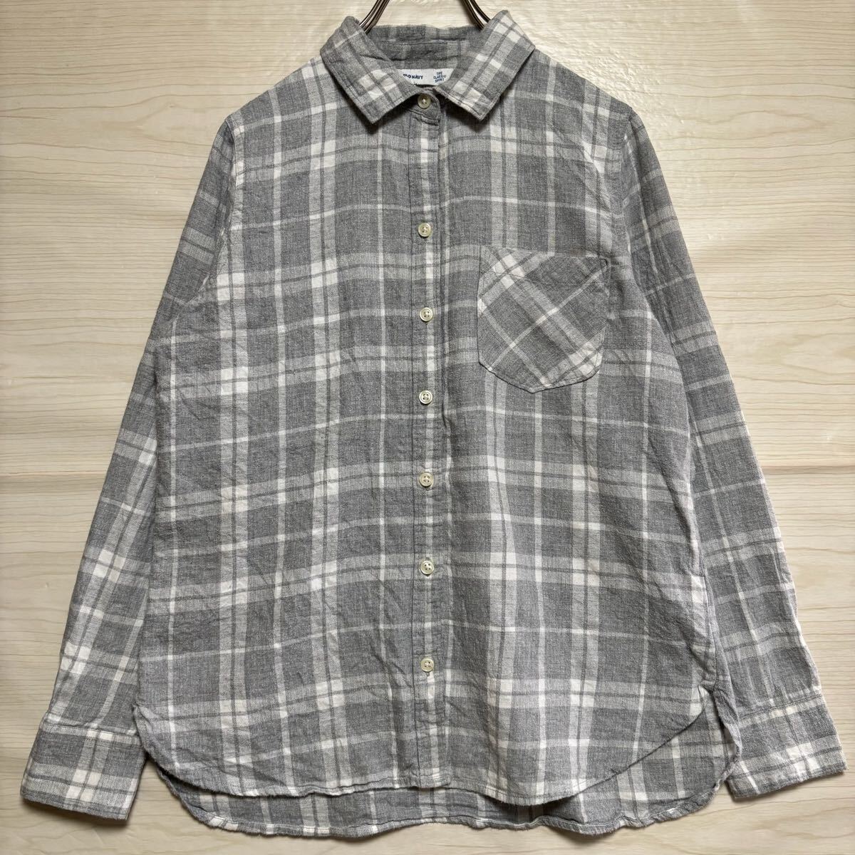 > OLDNAVY オールドネイビー 長袖シャツ レギュラーカラー チェックシャツ サイズM ライトグレー コットン メンズ トップス(37)