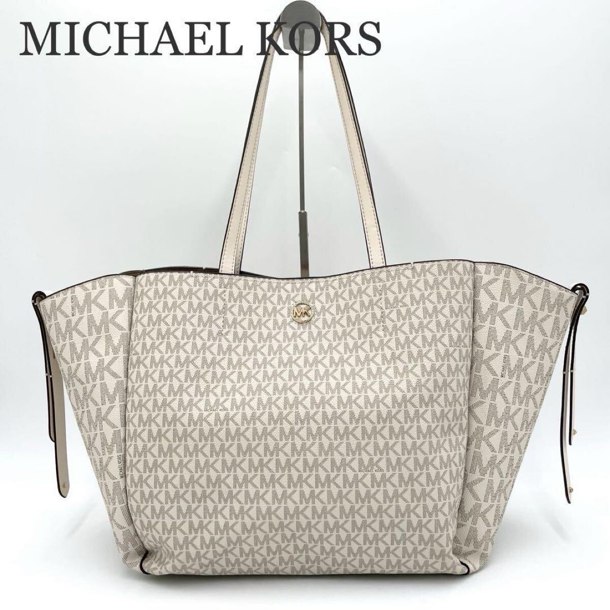> 【極美品】MICHAEL KORS マイケルコース FREYA トートバッグ レザー MKシグネチャー 総柄 ゴールド金具 A4可 肩掛け可 大容量 通勤 通学 白