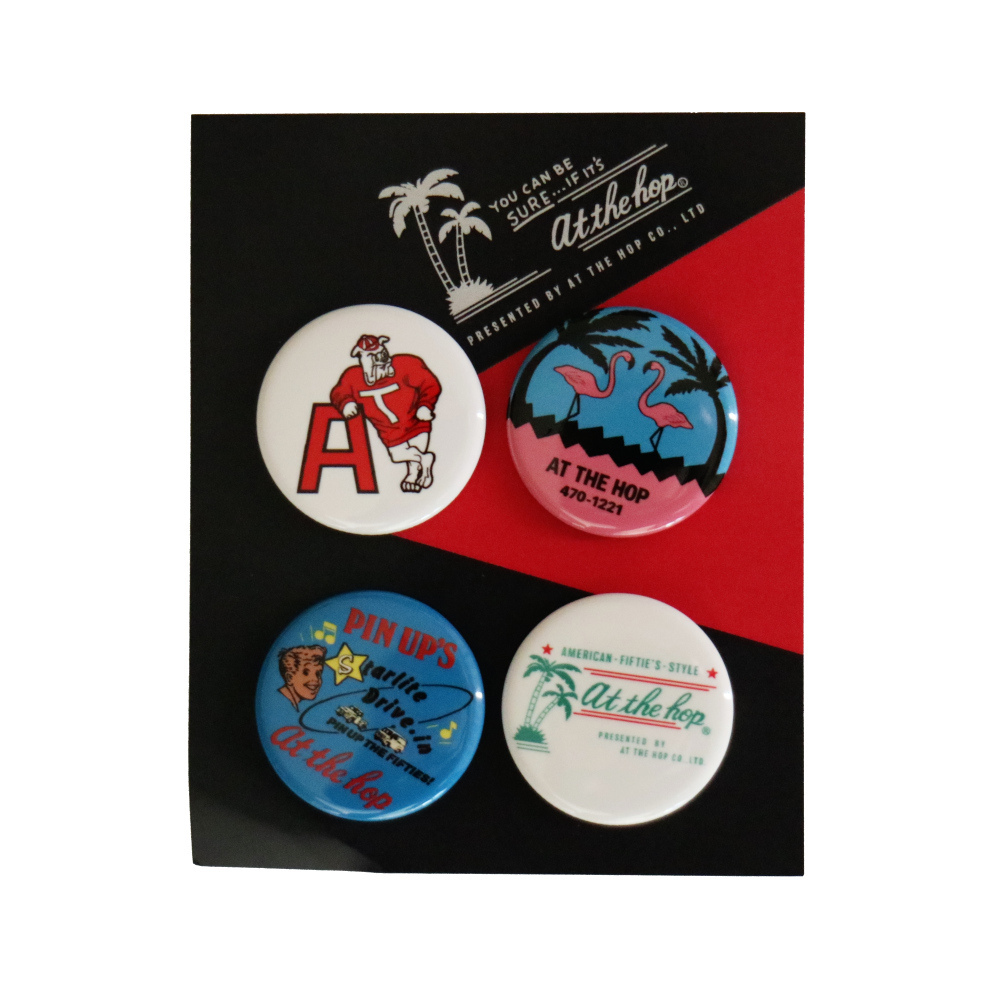 - アットザホップ バッジ 缶バッジ at the hop缶バッジセット 4個セット ロックンロール ロカビリー フィフティーズ 50s ロック AT THE HOP