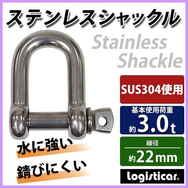 > 送料無料 ステンレスシャックル JIS規格 ねじ込みタイプ M22 線径約22mm 開口約44mm 使用荷重約3.0t 約3000kg SUS304 JIS ステンレス製