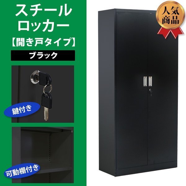 - 送料無料 ロッカー おしゃれ スチールロッカー 開き戸タイプ ブラック 鍵付き スペアキー付き 可動棚付き 観音開き 書庫 スチール製 保管庫