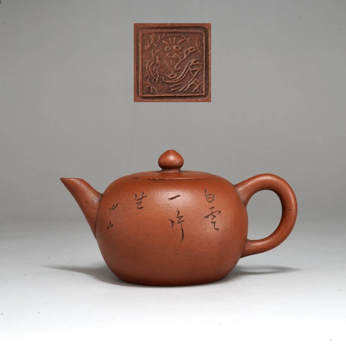 - 唐物 朱泥 水平 急須 宜興窯 紫砂 茶注 煎茶道具 時代物 小振り