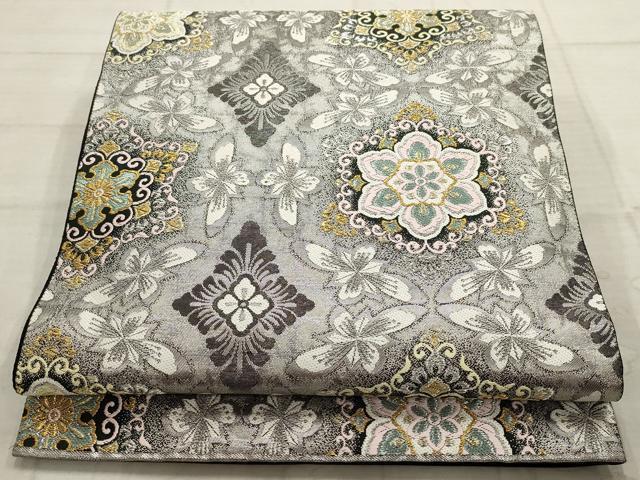 - 平和屋着物▼六通柄袋帯 吉祥花唐草文 黒地 金銀糸 正絹 逸品 AABB9961wj
