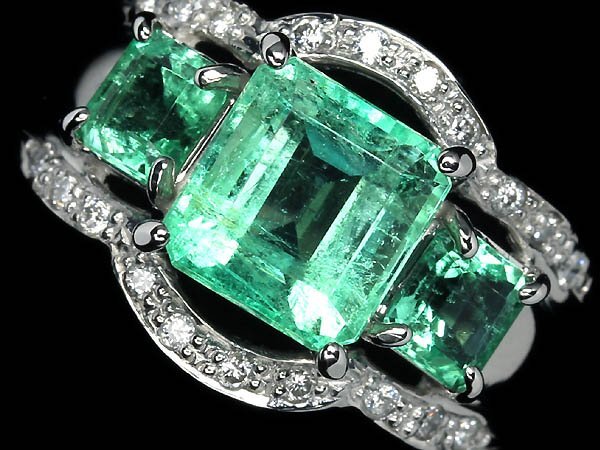 - MR17053S【1円~】新品【RK宝石】≪Emerald≫ 美しい透明感!! 極上エメラルド 3石 総計2.02ct 極上ダイヤモンド Pt1000 高級リング ダイヤ