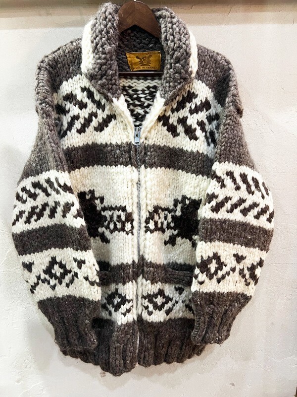 > Q27★madeinCANADA カナダ製 サンダーバードカウチンニット ニットアウター カウチンセーター メンズ XLサイズ程度 Vntage ★