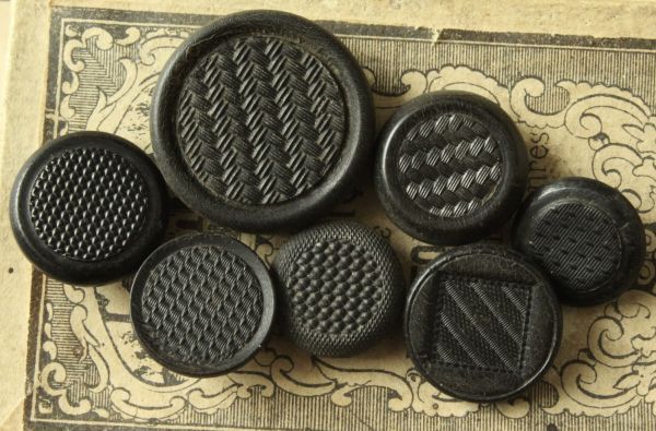 - 即決 プレスドホーン製 ボタン 7個 φ13.5~22mm 織り目模様 ファブリック柄 編み目模様 黒染め 角ボタン パーツ リメイク フランス輸入