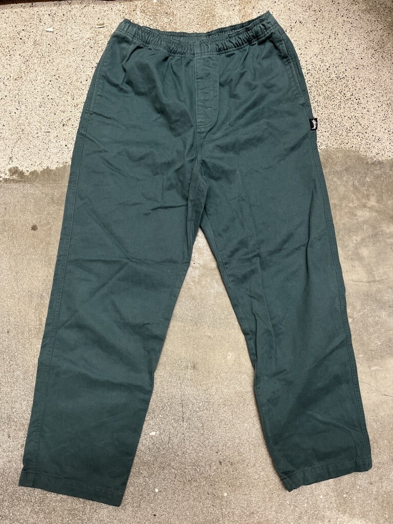 > STUSSY / ステューシー Brushed beach pant イージーパンツ メンズmサイズ カーキ グリーン ロゴプリント コットン 116553 used