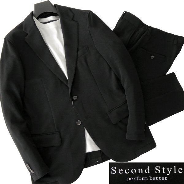 - 新品 セカンドスタイル 鹿の子 ジャージー イージー セットアップ スーツ L 黒 【2-383H_9_L】 春夏秋 ストレッチ ジャケット パンツ