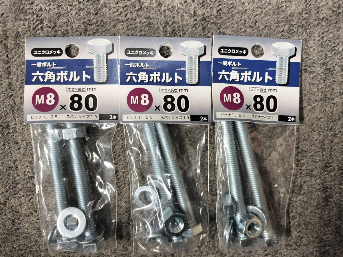 - 六角ボルト M8 80mm ユニクロメッキ 6本 八幡ねじ