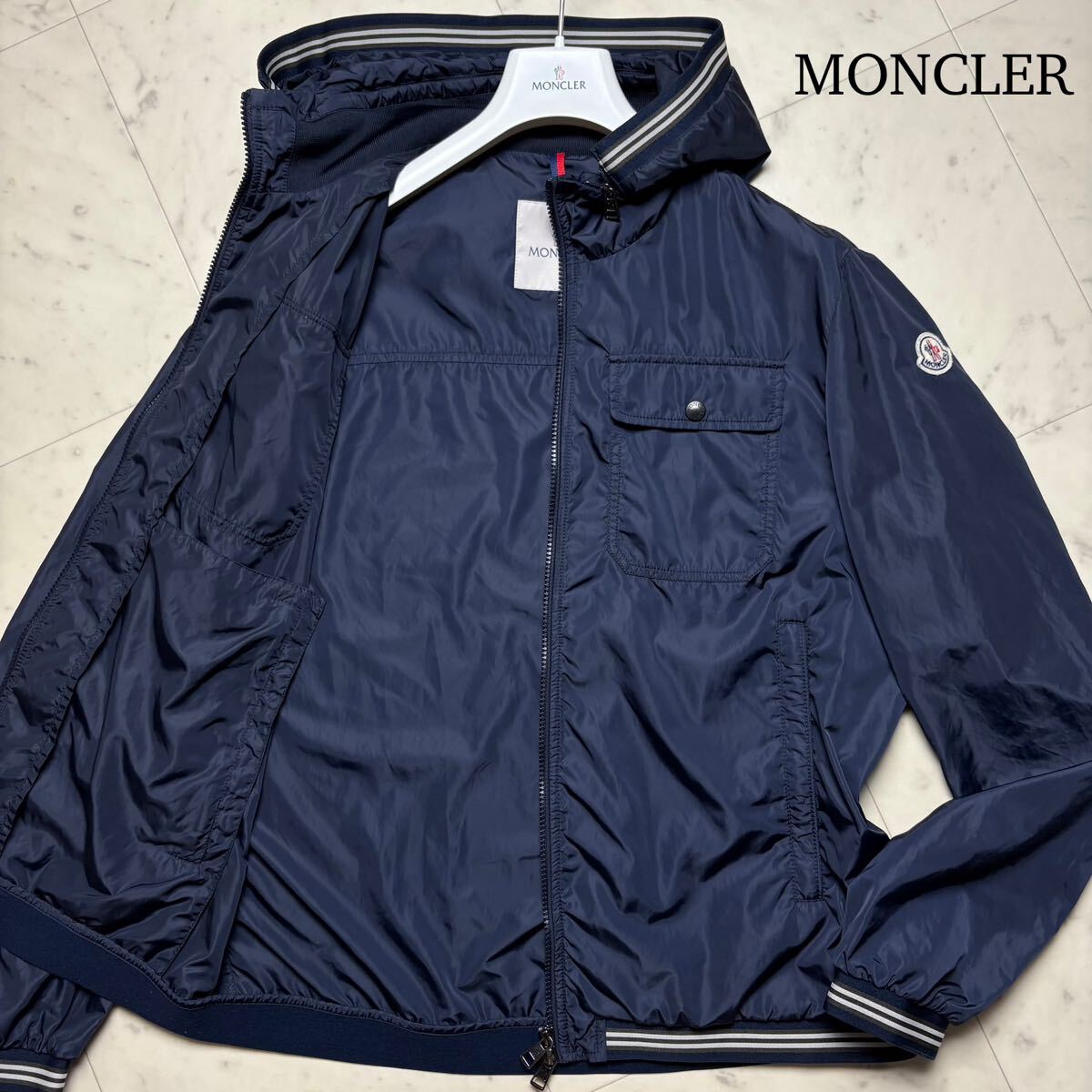 > 美品/XL★ MONCLER モンクレール JEANLUC ナイロンジャケット パーカー 着脱フード ブルゾン 大きいサイズ 4 ロゴワッペン ネイビー メンズ