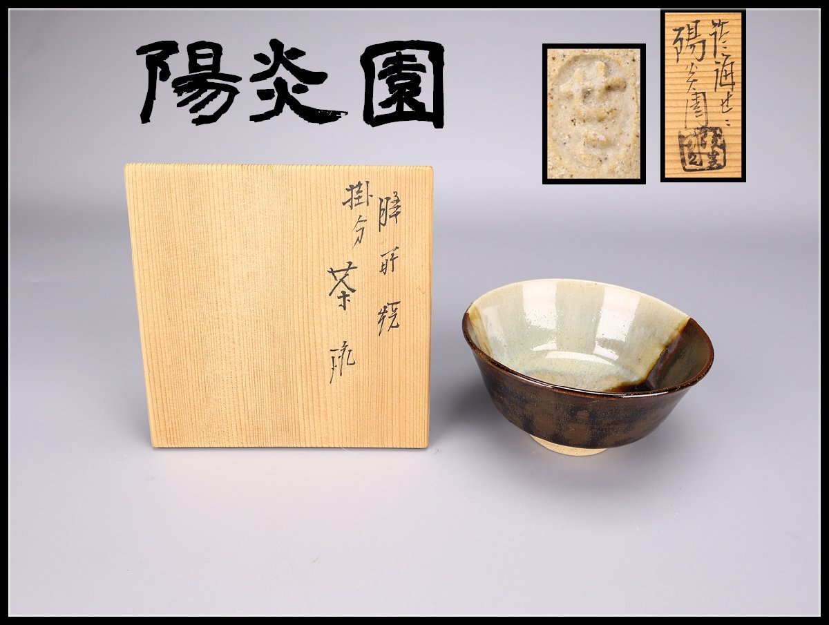 【吉】CN548 膳所焼 淡海ぜぜ 【陽炎園】 釉掛分け 茶碗/共箱付 美品!拍卖