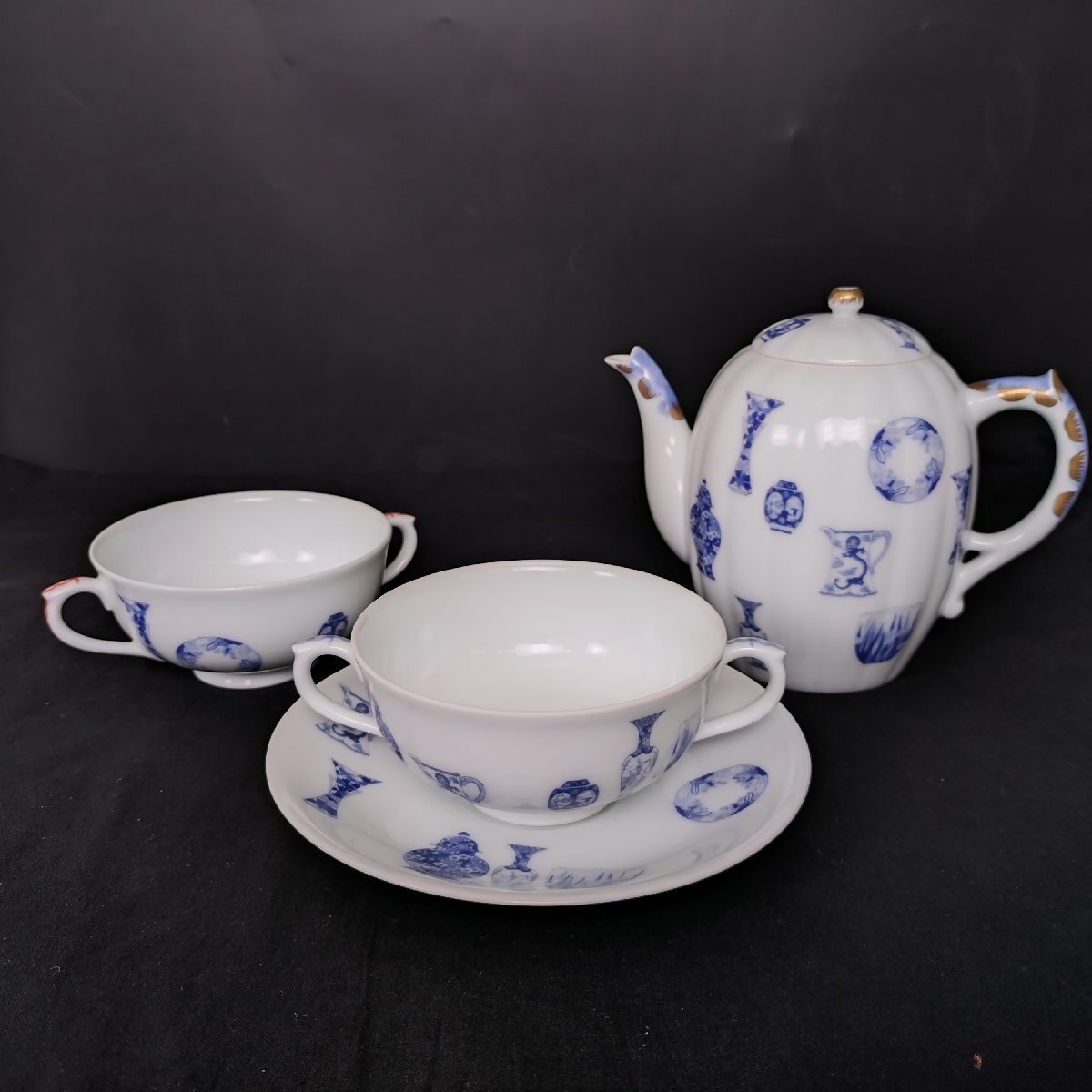 ・ポット高さ 約 15 cm 幅 約 18.5 cm 奥行 約 6 cm ・カップ 高さ 約 5 cm 幅 約 15 cm 奥行 約 11 cm ・ソーサー 高さ 約 3 cm 幅 約 16.5 cm 奥行 約 16.5 cm