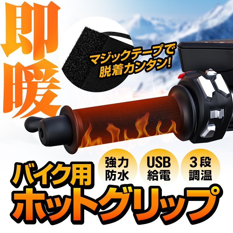 > USB給電/PD充電ホットグリップ 10秒即暖 巻き式 モバイルバッテリーから給電可 防水IP67 グリップヒーター 水洗い対応 WUPUGH567