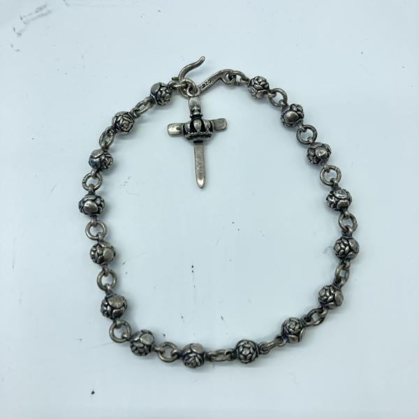 - 【中古】ROYAL ORDER ローズビーズ クラウン 十字架 ブレスレット シルバー925[240019502694]