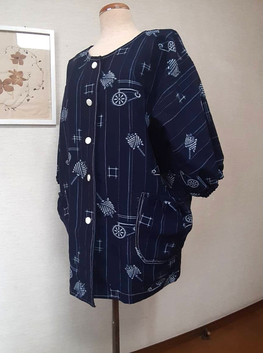 - 【送料無料】着物リメイク ハンドメイド 1点物 ウール ホームウエア 暖かい L~LL