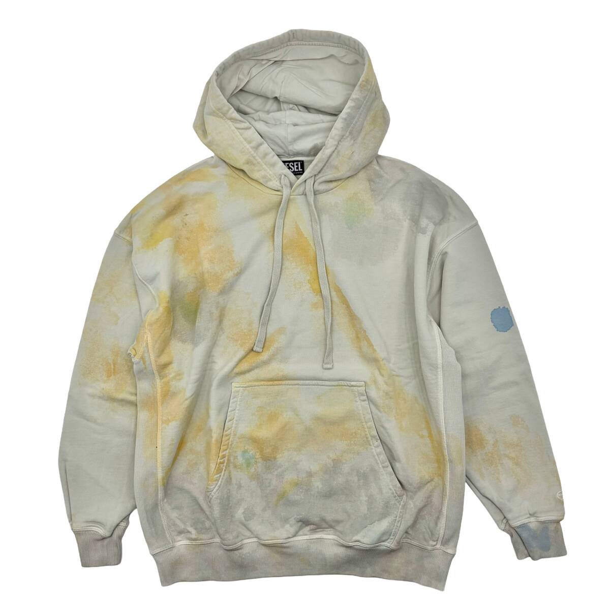- 新品◆DIESEL◆イタリア製◆ヴィンテージ加工 オーバーサイズ スウェットパーカー◆DSL◆グレーxイエロー パーカ◆Mサイズ◆ディーゼル