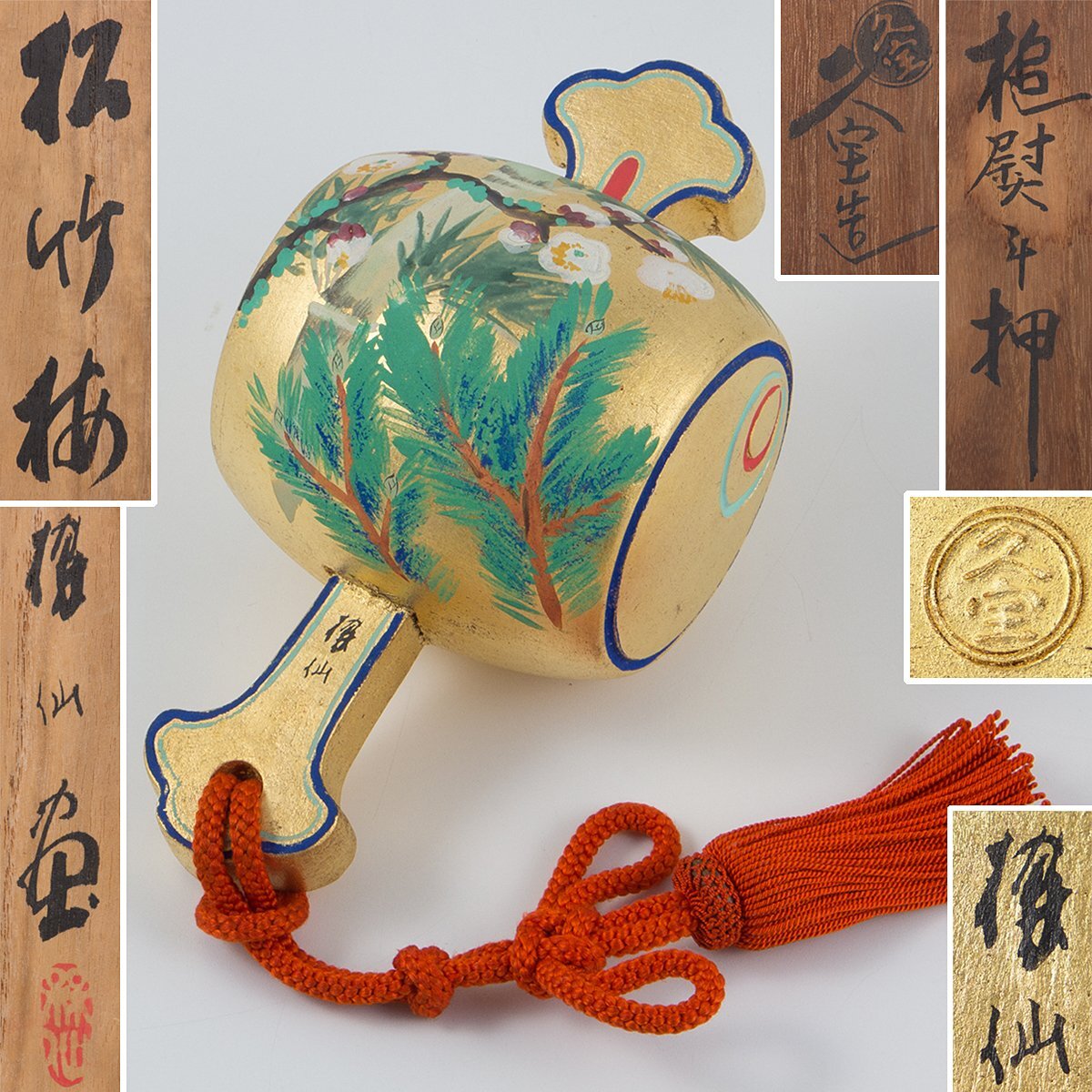 “商品説明の『続きを見る』もしくは携帯端末アプリの『もっと見る』から追加画像をご覧ください” 商品説明 品名 久世久宝 造 平井楳仙 画 松竹梅槌熨斗押 置物 共布 平井楳仙箱書 共箱 寸法 縦21cm 横10.5cm 高11cm 重量736g ※寸法に若干の誤差が生じます。ご承知下さい。 状態 良好。 略歴 平井楳仙1889~1969 京都府出身 日本画家 本名:平井秀三 号:楳僊(楳仙) 師:竹内栖鳳 京都市立美術工芸学校卒 文展褒章 明治40(1907)年に文展初入選以降、同展に出品し文展褒章・1等賞・2等賞など文展の中心的画家として活躍。また榊原紫峰・入江波光らと桃花会を結成。戦後は後援会(楳仙会)を中心に活躍した。作風は人物・花鳥・山水など緻密な描写に優れた。 備考 補足 送料 ■ゆうパック80サイズ(詳細は以下の〈配送方法〉を参照して下さい) ※形状・性質が異なるものは同梱をお断りさせていただく場合がございます。同梱の場合、サイズ変更により表示される送料の金額を修正させていただく場合がございます。予めご了承いただきますようお願い致します。 ※2023年10月より日本郵便の郵便価格改定により、配送料を改訂させていただきます。何卒ご理解の程よろしくお願い致します。