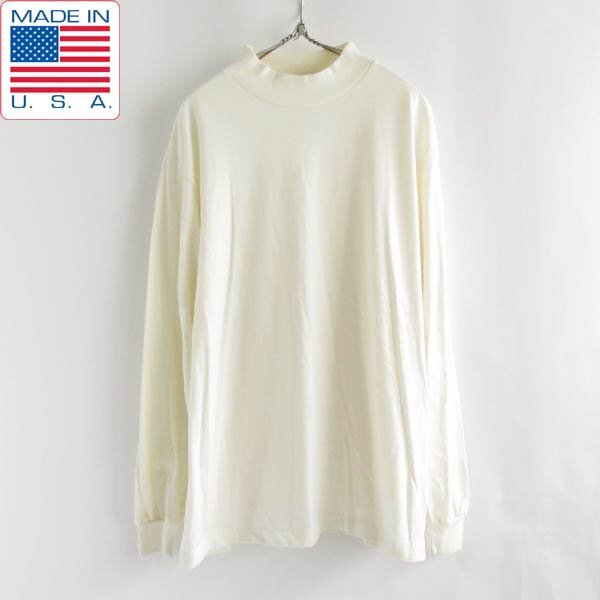 - 新品 90s USA製 garden mountain モックネック 長袖Tシャツ XL クリーム系 コットン アメリカ製 ビンテージ デッドストック D149-11-0003ZV
