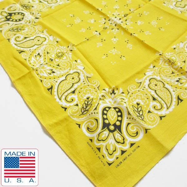 > レア/美品/70's/USA製/ビンテージ/バンダナ/黄色系/コットン/イエロー/RN14193/WAMCRAFT/アメリカ製/D66-43-0001