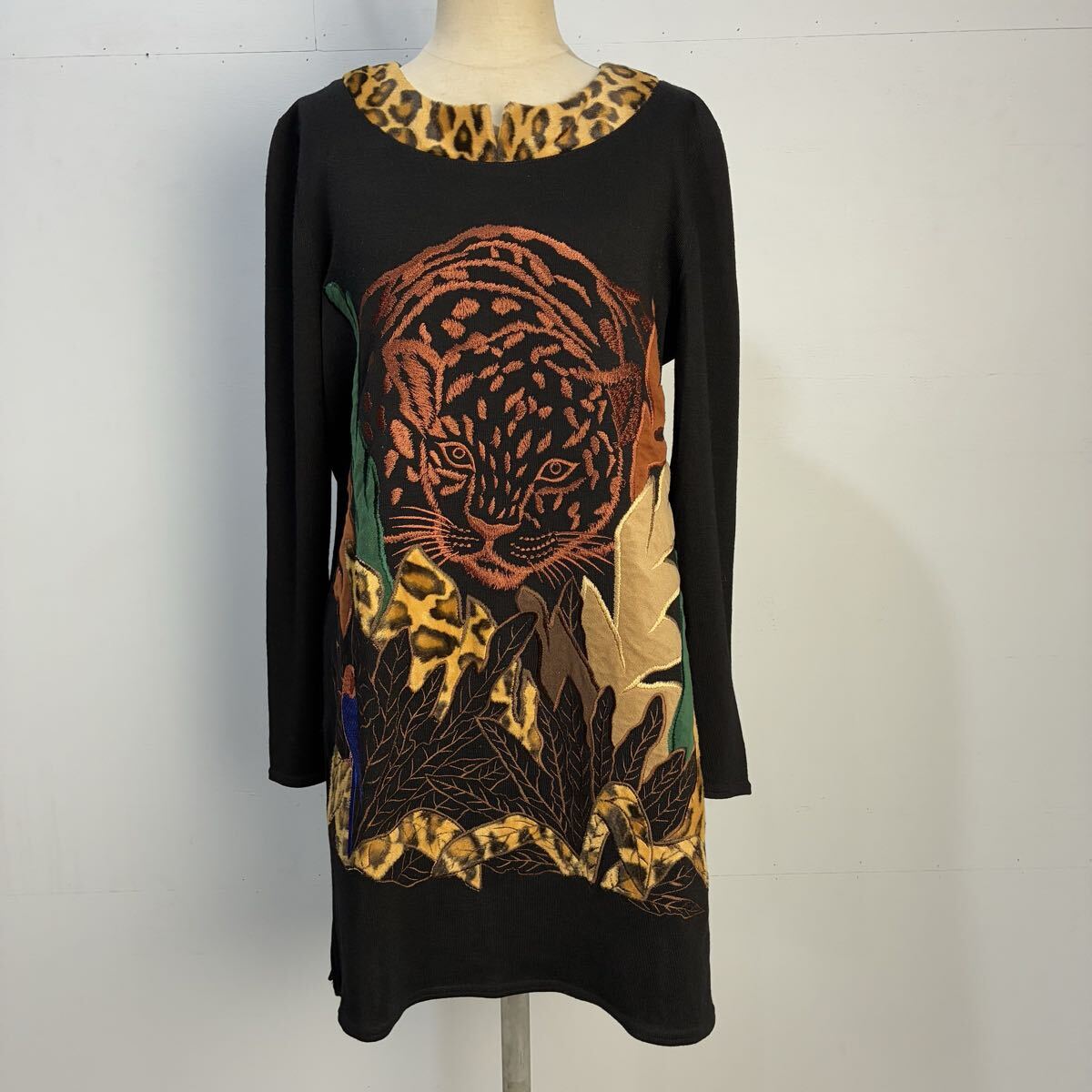 - 伊太利屋 刺繍ニット チュニックニット 長袖ニット ヒョウ柄 アニマル柄 チュニックワンピース イタリヤ GKITALIYA【送料一律/同梱可能】A