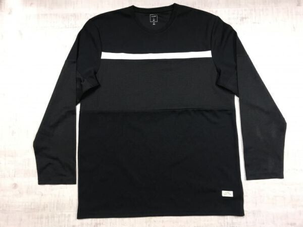 > STAMPD + GAP スタンプド ギャップ コラボ ラグジュアリー モード スポーツ ラインプリント 異素材 長袖メッシュTシャツ ロンT メンズ M 黒