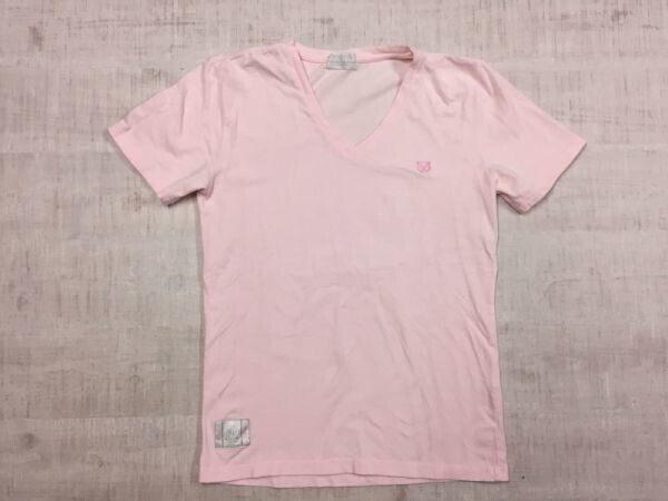 - セブンスタイル SEVEN STYLE オールド Y2K 00's Vネック キャラクター刺繍 半袖ピチTシャツ レディース M ピンク