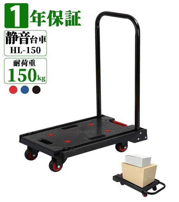 > 折り畳み台車 HL-150 ■ブラック 耐荷重150kg 台車 折りたたみ台車 手押し台車 キャリーカート 運搬台車 軽量 静音 1年保証