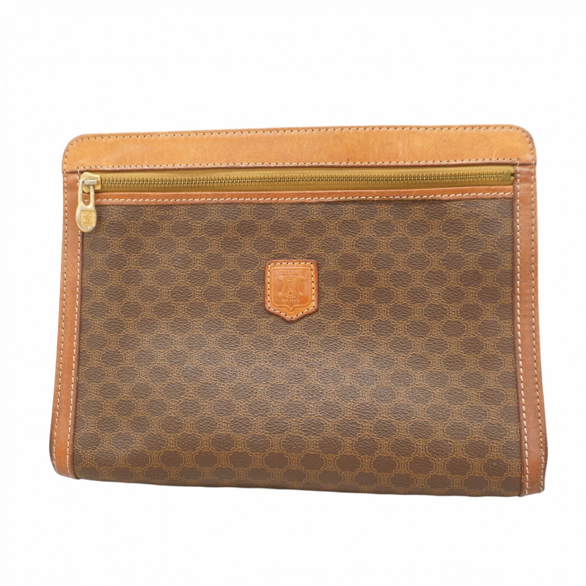 - ★SALE【5mc2868】セリーヌ クラッチバッグ マカダム PVC ブラウン ゴールド金具【中古】メンズ