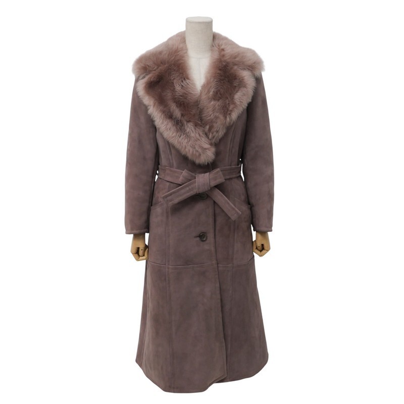- GS4298〇TANNIM PEX*リアルムートン*スエードレザー ファー*ベルテッドコート*ロングコート*ムートンコート*サイズ36*ブラウン系