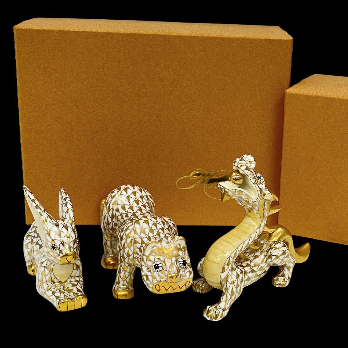 > ヘレンド 2010(とら)2011(うさぎ)20112(たつ)ゴールドフィッシュネット フィギュリン 計3点 14-4248038