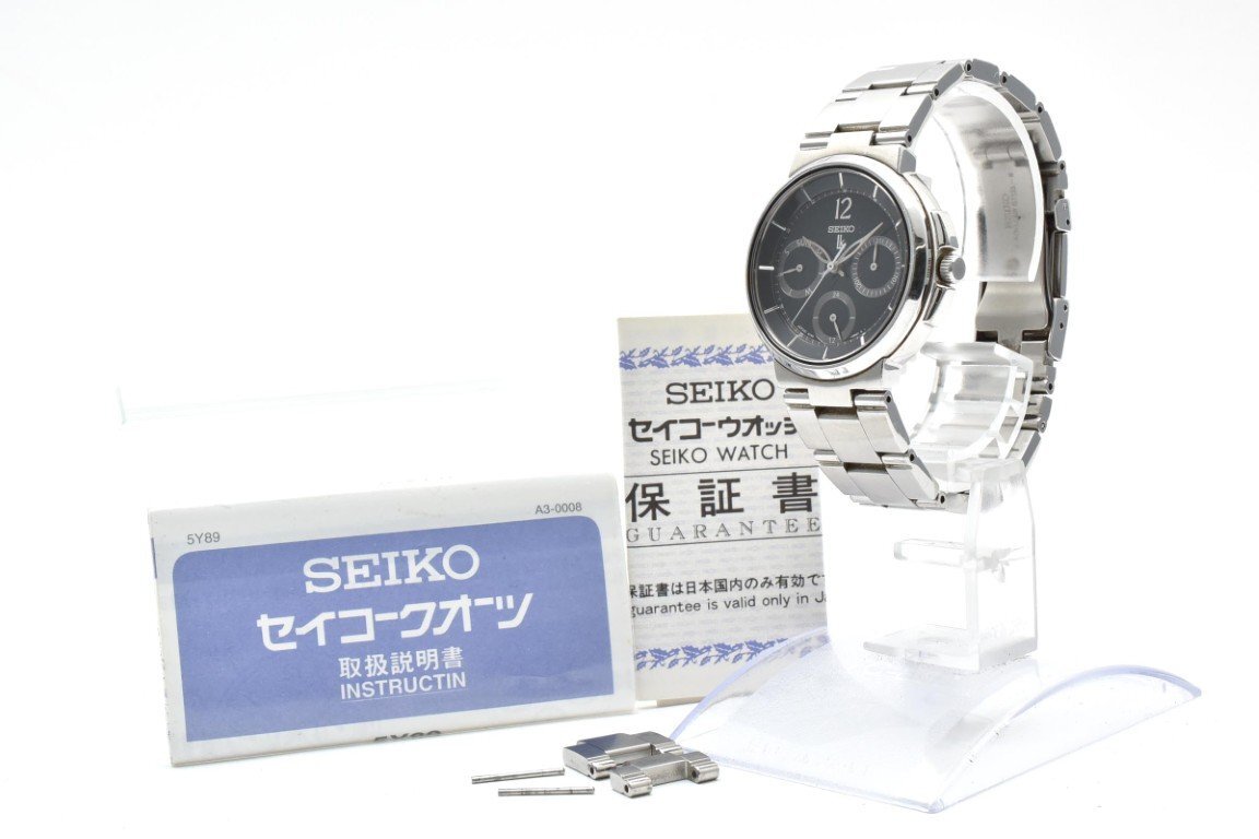 > セイコー ルキア 5Y89-0B70 ラウンド シルバー ブラック カレンダー ステンレス QUARTZ レディース 腕時計 SEIKO LUKIA