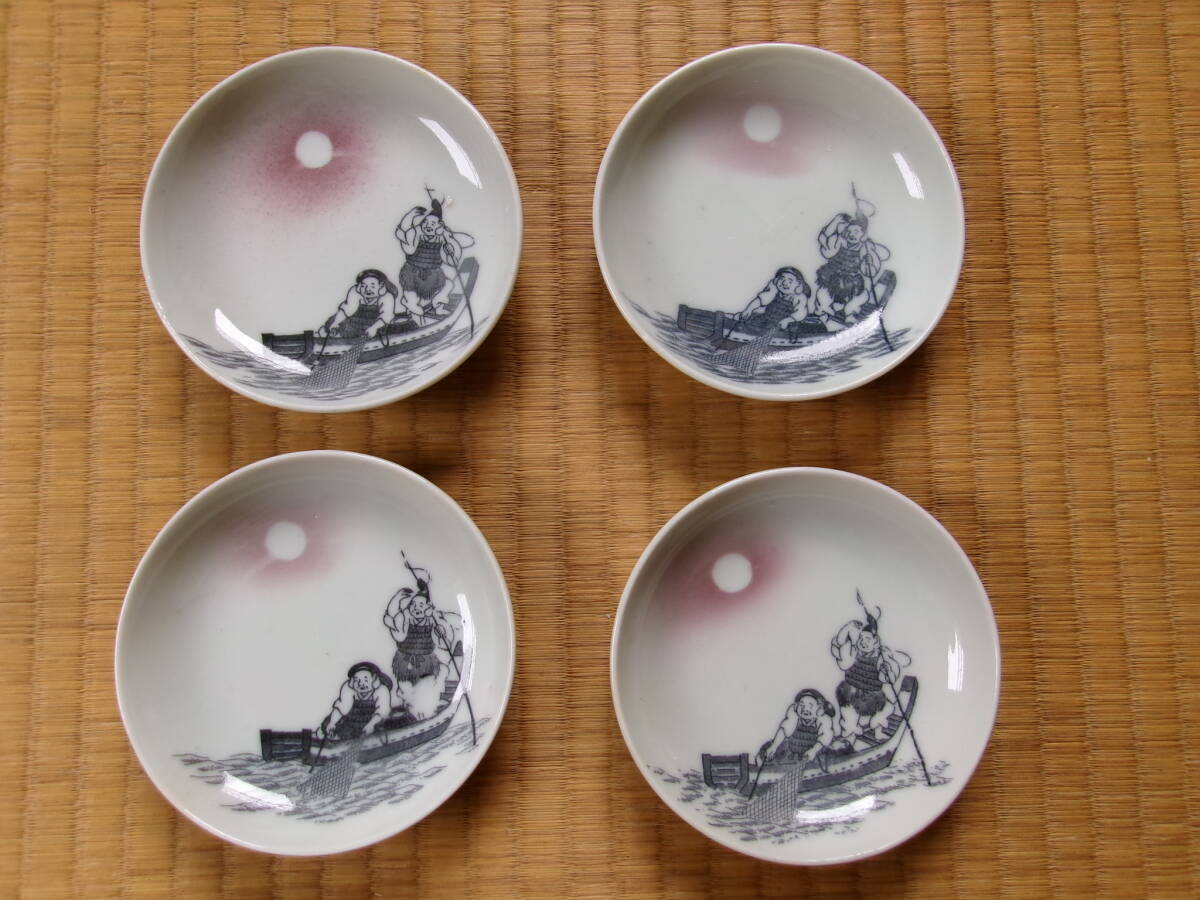 - 印版 手塩皿 恵比寿大黒 魚取り図 日輪 4枚