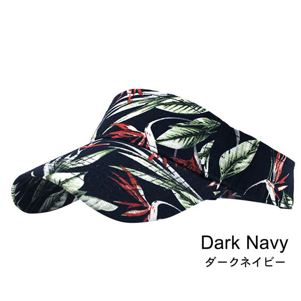 - バイザー 日除け ゴルフ 帽子 テニス サンバイザー メンズ レディース キャンパス ハワイアン柄 サンバイザー ダークネイビー