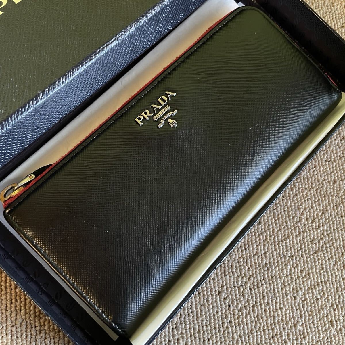 - 一円 美品 PRADA プラダ 長財布 ウォレット 財布 ロングウォレット サフィアーノレザー ラウンドファスナー L字型