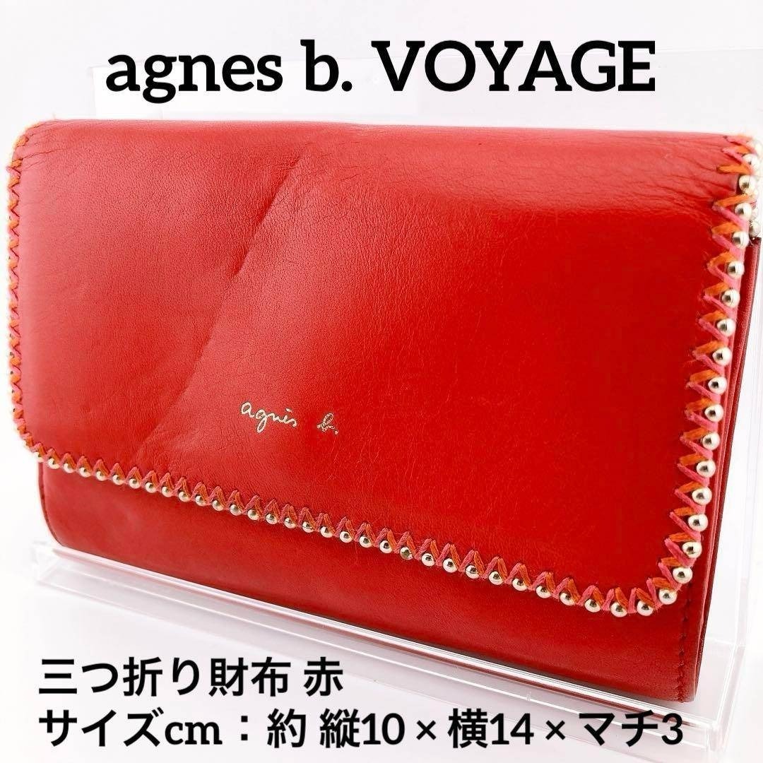 - agnes b. VOYAGE アニエスベー 三つ折り財布 赤 レザー