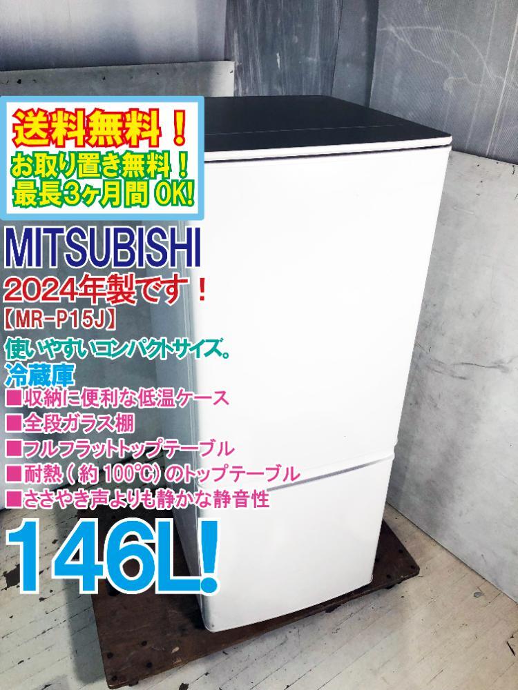 > 送料無料★2024年製★極上超美品 中古★三菱 146L 全段ガラス棚!フルフラットトップテーブル☆冷蔵庫【MR-P15J-W】FP42