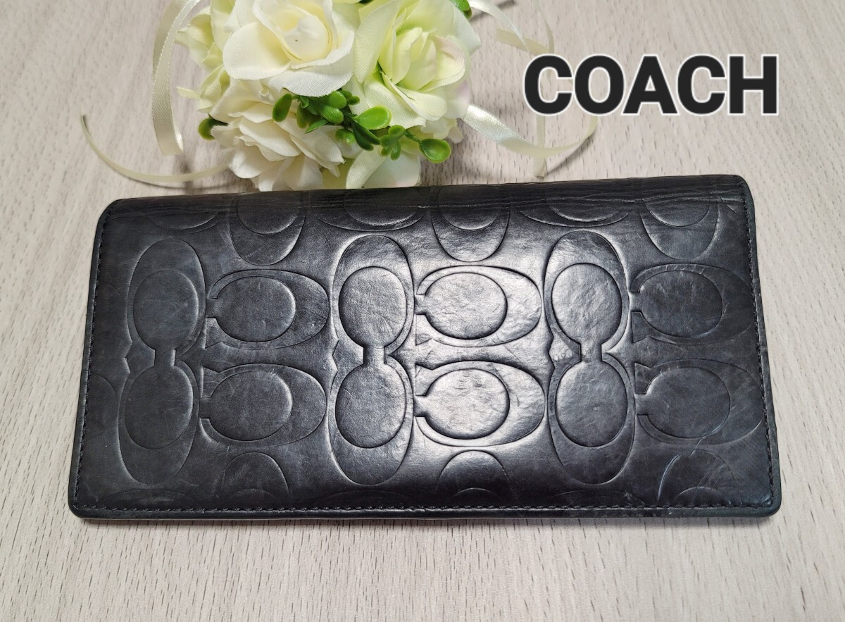 - 【COACH】コーチ 長財布 シグネチャー ブラック レザー メンズ