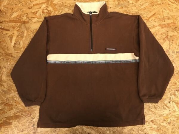 - MICHIKO LONDON SPORTS ミチコロンドン スポーツ レトロ 長袖スウェットトレーナー メンズ ハーフジップ 茶色