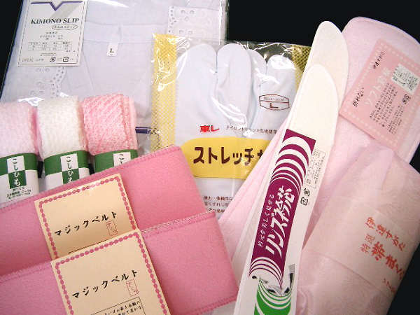 - 着物美人 着物スリップ 肌襦袢 肌着 L 足袋 帯板 帯枕 伊達締め 腰紐 襟芯 【 振袖 訪問着 和服用 インナー10点セット 】328733-7