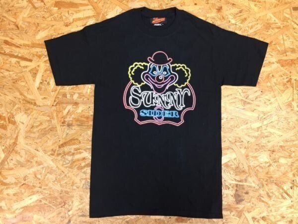 - YUPPY ヤッピー SUNNY SIDER サニーサイダー ピエロ ネオンプリント 半袖Tシャツ メンズ コットン100% S 黒