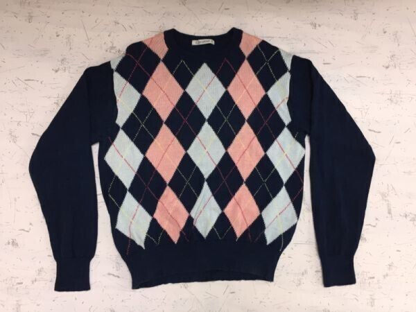 - ハムステッド Hampstead キレカジ トラッド アーガイル クルーネック コットンニット プルオーバー セーター レディス 綿100% 紺
