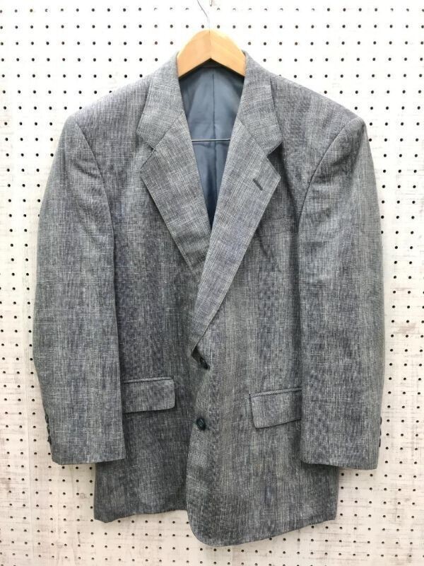 > Mr.CLASSIC メンズ トラッド オールド ジャパンレトロ モード古着 麻混 カスリ 絣 2つボタン テーラードジャケット 青系 サイズ96 AB5