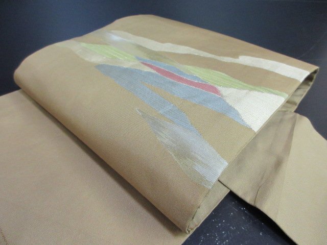 - 1円 中古 名古屋帯 正絹 和装 和服 幾何学 抽象 六通柄 九寸帯 長さ358cm【夢職】★