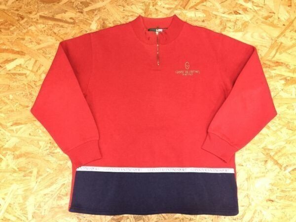 > GIANNI VALENTINO ジャンニヴァレンチノ 配色切替 ジップ モックネック 長袖スウェットシャツ トレーナー キッズ160 大人もOK◎ 赤紺