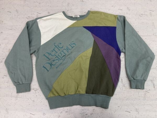 > Perfe Designus レトロ オールド モード バブリー 国産 80s 古着 アート 配色切替 スウェット トレーナー メンズ マルチカラー