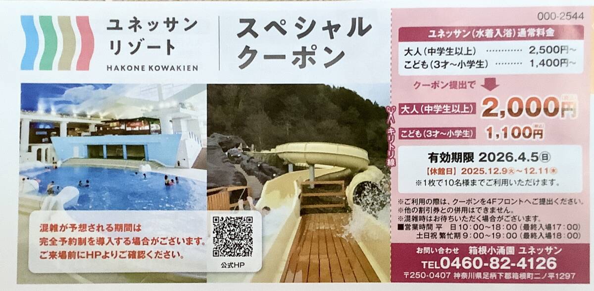 - 箱根小涌園 ユネッサン スペシャルクーポン→期限4.5/送85〜
