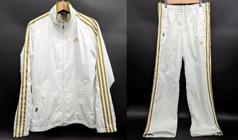 > 4962S ADIDAS アディダス CLIMAPROOF 防風性 メンズ ホワイトxゴールド セットアップ ウインドブレーカー 上下 セット M