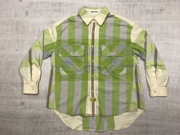 > ミルクフェド MILKFED. ストリート モード 古着 チェック バックプリント 長袖シャツ トップス レディース ONE SIZE 緑系