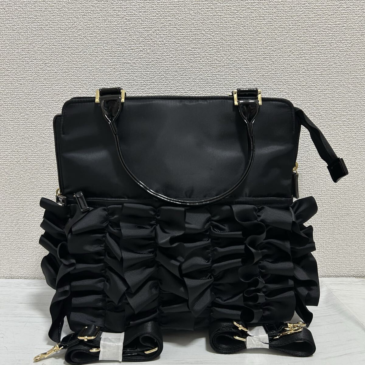 > Yoshimi Lace ヨシミレース 3way レディース リュックサック ショルダーバッグ トートバッグ 黒色 ブラック リボン フリル 可愛い ガーリー