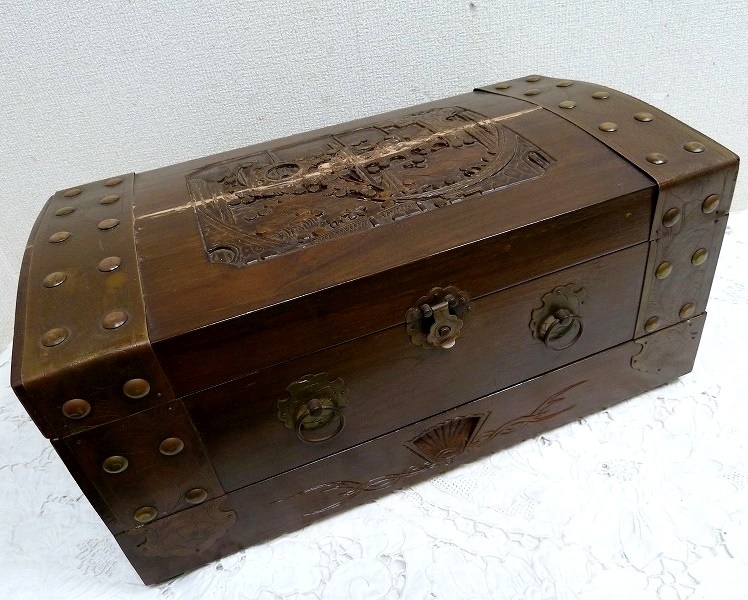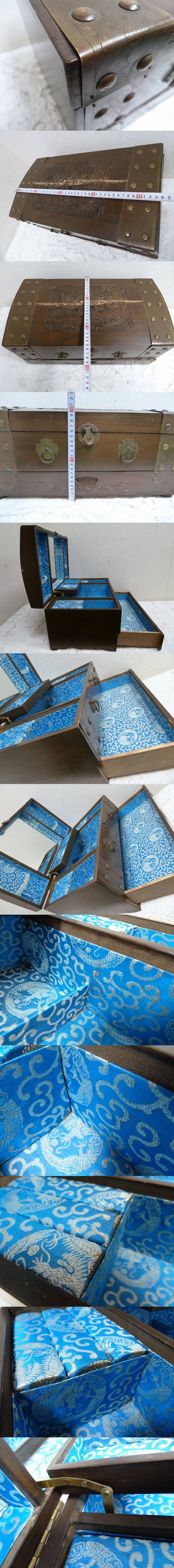 - (☆BM)マンダリンレトロ ジュエリーケース ボックス 横幅44㎝ 木製 ミラー 鏡付き アンティーク調 宝石箱 木彫り 大型 中国 古玩